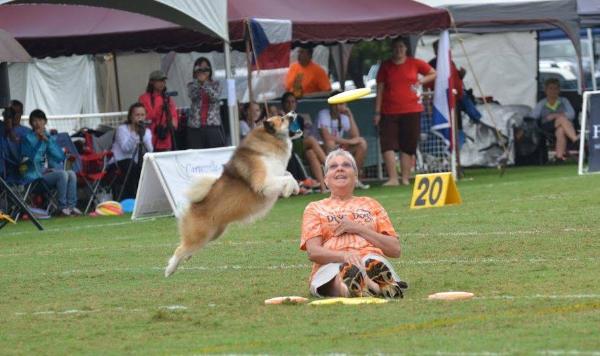 Barb and Cane at the World Disc Dog Championships in Georgia in 2014. Go Team Golden Pond!