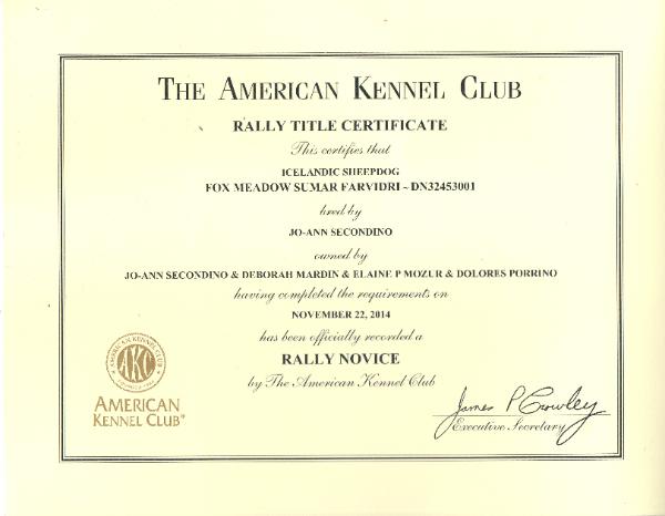Cane has earned his Rally Novice and has Qualified and placed in