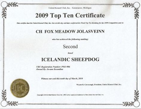 | Congratulations to Fox Meadow Jolasveinn's Cousins Grand Champion Arbakki Magni of Asgard Icelandics Ranked AKC's #3 Icelandic Sheepdog in 2011 Grand Champion Arbakki Snorri of Brosandi Icelandics Ranked AKC's # 7 Icelandic Sheepdog in 2011 |