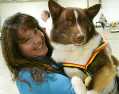 | Int/Nat-Ch UKC-CH Fox Meadow Jolasveinn Jolasveinn and I at the IABCA show after his two Best Bred By Exhibitor - Herding Group Puppy Wins |